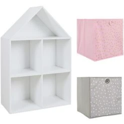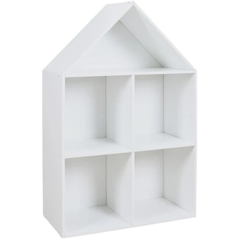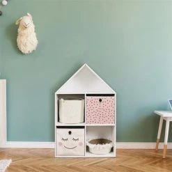 Un joli meuble de rangement en forme de maison composĂ© de 4 casiers pratiques au quotidien. Cette petite maison ultra-dĂ©co permettra de ranger avec style dans une chambre d’enfant.