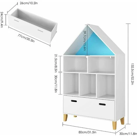 ★Beaucoup d’espace de rangement : il dispose de six compartiments ouverts et d’un tiroir pour ranger livres, magazines, jouets, cadres photo, vases à fleurs, décorations et autres articles ménagers. L’espace de stockage multicouche et divisé rend votre pièce plus propre.