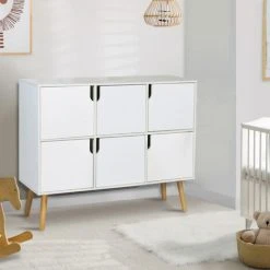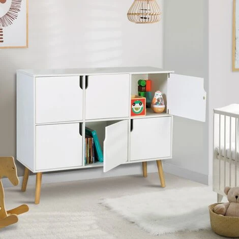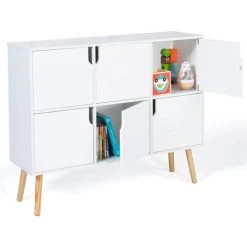 IdĂ©al pour apporter une touche scandinave très tendance dans la chambre de votre enfant, ce meuble de rangement EMMIE vous permettra surtout de ranger aisĂ©ment tous les jouets de votre enfant.Sa structure solide blanche et ses pieds de 20 CM en bois de hĂŞtre vous apporteront une robustesse et un design qui ne vous laisseront pas indiffĂ©rent. Et sa praticitĂ© en fera rapidement un alliĂ© indispensable pour une chambre toujours bien rangĂ©e. En effet, grâce Ă ses 6 casiers de L.31 x l.30 x H.28 cm, terminĂ© les jouets qui trainent dans les quatre coins de sa chambre ! Vous pourrez y ranger l’ensemble de ses livres, peluches ou encore jeux de sociĂ©tĂ© afin qu’il puisse les retrouver en un clin d’oeil.Sa petite taille, avec ses 80 CM de haut, permettra Ă votre enfant d’y avoir facilement accès, et donc d’y ranger lui-mĂŞme ses jouets après les avoir utilisĂ©s. Les portes contiennent de larges encoches afin que votre enfant puisse ouvrir le meuble facilement. Par ailleurs, pour plus de sĂ©curitĂ©, les portes se ferment avec des fermetures par aimant afin d’Ă©viter que votre enfant se blesse en les fermant.Vous craquez pour ce meuble et souhaitez l’installer dans une autre pièce de votre maison ? Grâce Ă son design sobre et Ă©purĂ©, vous pouvez tout aussi bien installer ce meuble dans votre entrĂ©e ou dans votre salon. Avec ses 6 cases de rangement et ses portes Ă fermetures par aimant, vous pourrez y entreposer ce que vous voulez en toute discrĂ©tion.Craquez pour le meuble de rangement scandinave EMMIE et rangez tout ce dont vous avez besoin, que ce soit des jouets, des peluches ou des livres dans la chambre de votre enfant ou encore des dĂ©corations, vaisselles ou autres Ă©lĂ©ments dans votre salon.Dimensions du meuble de rangement cube enfant EMMIE 6 cases en bois blanc- Dimensions du meuble : Longueur 100 CM x largeur 30 CM x Hauteur 80 CM- Dimensions d’une case : Longueur 31 x largeur 30 CM x Hauteur 28 CM- MatĂ©riaux : Particule de bois 12 MM- Coloris : blanc- Pieds : 20 CM de Hauteur en bois de hĂŞtreRetrouvez l’ensemble de nos meubles de rangement enfant sur notre boutique en ligne !