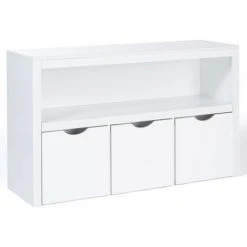 Parfait pour toutes les chambres d’enfants, ce meuble de rangement enfant vous Ă©tonnera tant par sa capacitĂ© de rangement que par sa petite taille. En effet, vous disposez de 5 grands espaces de rangement, sur seulement 62 CM de hauteur !Ses 3 tiroirs cubes sont parfaitement amovibles, et peuvent se retirer très facilement du meuble grâce au 4 roues situĂ©es en dessous de chaque cube ! Votre enfant pourra ainsi avoir facilement accès Ă ses jouets quand il le souhaite. Quand il/elle aura fini de jouer, il lui suffira de remettre les jouets dans les cubes et de replacer ceux-ci dans la structure, pour une chambre parfaitement rangĂ©e !Egalement, ses 2 Ă©tagères très pratiques vous permettent d’y entreposer des jouets ou bien livres et peluches afin que votre enfant y ait facilement accès ! Ainsi, au moment d’aller au lit, il pourra facilement attraper le livre qu’il souhaite que vous lui lisiez avant d’aller dormir.La petite taille de ce meuble (62 CM de hauteur seulement) permet Ă votre enfant de gagner en autonomie en allant lui-mĂŞme chercher ses jouets ou peluches, et cela lui permet aussi d’apprendre Ă ranger tout seul, comme un grand !Alors n’attendez plus et craquez pour le meuble de rangement 3 cubes MANA pour une chambre toujours ordonnĂ©e ! Dimensions du meuble de rangement enfant MANA avec 3 cubes en bois blanc- Dimensions totales du meuble : Longueur 102 CM x largeur 33 CM x Hauteur 62 CM- Dimensions d’un cube : Longueur 30 x largeur 33 x Hauteur 30 CM- Hauteur de l’Ă©tagère : 26 CM- MatĂ©riaux : Particule de bois 12 MM- Coloris : blanc- Nombre de roues : 12 Retrouvez l’ensemble de nos meubles de rangement enfant sur notre boutique en ligne !