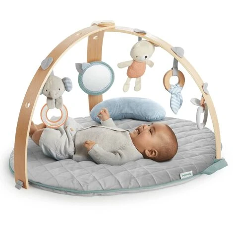 Cette mini-portique d’activitĂ© bĂ©bĂ© rĂ©versible Cosy Spot de la marque Ingenuity est spĂ©cialement conçue pour favoriser le dĂ©veloppement prĂ©coce.