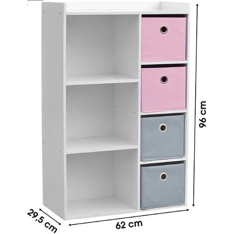 CaractĂ©ristiques pour Meuble de rangement pour fille 3 niches + 4 tiroirs Rose et Gris:Â