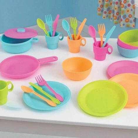 | Composition | 27 pièces (4 couteaux + 4 cuillères + 4 fourchettes + 4 assiettes + 4 bols + 4 tasses + 1 poêle + 1 casserole avec couvercle) |