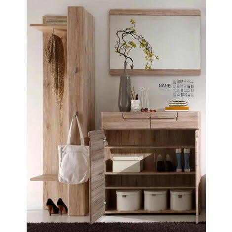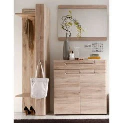 Pour une entrĂ©e accueillante, agrĂ©able Ă voir et Ă©lĂ©gante, optez pour cet ensemble de 3 meubles. Ils sont simples mais fonctionnels, ils offrent un aspect Ă©purĂ© Ă la pièce. Ces meubles sont conçus en bois mĂ©laminĂ© avec un revĂŞtement imitation chĂŞne clair. Pratiques et solides, ils seront vos alliĂ©s pour un intĂ©rieur Ă©lĂ©gant et bien organisĂ©.Inclus :Commode 2 portesMiroir mural rectangulairePorte-manteauDĂ©tails : Commode 2 portes : Dimensions : L 90 x P 35 x H 95 cm2 portes avec 4 compartiments Ă l’intĂ©rieurMiroir mural rectangulaires : Dimensions : L 90 x P 2 x H 64 cmFixation dissimulĂ©ePorte-manteau : Dimensions : L 50 x P 35 x H 191 cm2 crochets2 Ă©tagèreDimensions de l’ensemble : L 168 x P 38 x H 191 cmMatĂ©riau: panneaux de particules mĂ©laminĂ©sColoris : chĂŞne clairFabrication : AllemandeGarantie : 2 ansNous ne livrons pas en Corse.