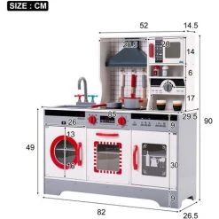 En plus des cuillères de cuisine et de mélange, casserole, casserole, tasse à café et pots à épices, cette cuisine pour enfants est également équipée de hotte aspirante, four, cafetière, hotte aspirante, micro-onde et placard. Le design transparent de la porte tente de recréer la vraie cuisine. Les enfants peuvent jouer librement avec ces mini cuisines.