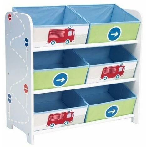 Meuble de rangement multicolore motif route pour chambre enfant. Étagère composée de 3 niveaux comprenant 6 bacs en tissu, excellent produit qui sera idéal pour parfaire la décoration de la chambre de votre enfant. A monter soi-même. Dimensions : H 60 x L 63,5 x P 30 cm. Poids : 7 Kg. Matière : bois et tissu. Coloris : multicolore motif route