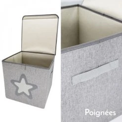 D’un style minimaliste et unisexe, la boĂ®te de rangement Harmonie Gris Étoile est un objet pratique mais aussi dĂ©coratif du plus bel effet pour camoufler les jouets de vos enfants dans le salon ou dans leur chambre. Elle sera parfaite pour rĂ©organiser ou organiser vos pièces de façon satisfaisante.