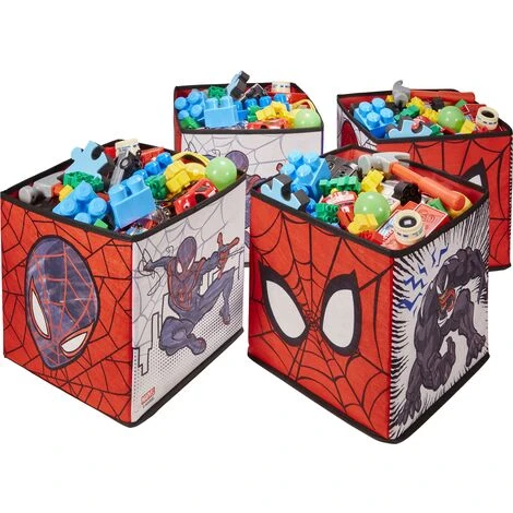 Lot de 4 cubes de rangement pliables et dĂ©coratifs – Marvel Spiderman 28 cm x 28 cm