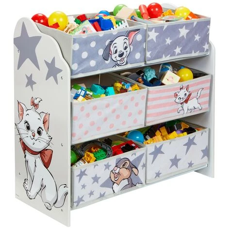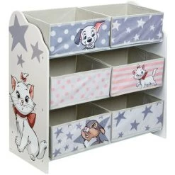 Meuble 6 paniers Enfant Disney Les 101 Dalmatiens, les Aristochats et Panpan bambi – Coloris : Gris et rose