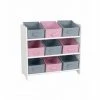 Ce meuble de rangement en bois est composé de 6 casiers en tissus facilement manipulable par les enfants dés 18 mois.