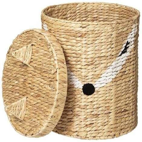 Le grand panier en jacinthe tressĂ©e avec couvercle sĂ©duira les petits par son design de renard et ses petites oreilles sur le dessus. IdĂ©al comme panier Ă linge ou comme panier de rangement pour jouets. La structure en fer apporte le maintien nĂ©cessaire tandis que le tressage en jacinthe apporte beaucoup de style Ă ce panier. Dimensions : D. 37 x H. 50 cm. Poids : 1,7 kg. Matière : fer et jacinthe. Marque : Atmosphera.Â