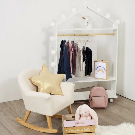 Penderie pour enfant sur roulettes de la marque Atmosphera. Aussi pratique que esthĂ©tique, cette penderie sur roulettes permettra de ranger vĂŞtements et autres affaires de votre enfant. Sa hauteur de 120cm permet Ă votre enfant de ranger lui mĂŞme ses vĂŞtements ! La penderie dispose de 4 roulettes pour faciliter son dĂ©placement. A monter soi-mĂŞme, notice incluse. Dimensions : L80,5 x l30 x H120 cm. Poids : 9,5 kg. Matière : fibres de bois MDF. Marque : Atmosphera.Â