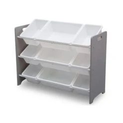 Une Ă©tagère avec bac de rangements, voilĂ qui permet dÂ’avoir une chambre bien organisĂ©e !Pour ranger ses jouets, ses livres et tous les trĂ©sors de son monde, nous vous proposons ce rangement très pratique. ComposĂ© de 3 niveaux avec 3 bacs en plastique chacun, il est un atout de taille pour les chambres bien rangĂ©es.Son coloris gris avec bacs blancs est idĂ©al pour accompagner tous les styles de dĂ©cos.Facile Ă monter, il est aussi très facile Ă entretenir. Voici ses dimensions : hauteur 57cm x largeur 60cm x profondeur 30cm. Grand organizer gris 9 bacs plastiques blancs- Avantage produit : grand format pour un rangement optimum, 9 bacs plastiques, deux tons de couleurs pour faciliter l’organisation du rangement, montage facile- Dimensions : hauteur 58cm x largeur 83cm x profondeur 28cm- Design : gris avec bacs blancs- Composition : MDF et plastique- A monter : oui- Age conseillĂ© : 3 ans +