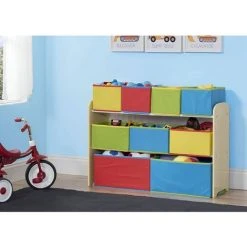 PETIT POUCET Meuble De Rangement Enfant Avec 9 Bacs Multicolores Plastiques Blancs Signature Delta Children – Multicolor