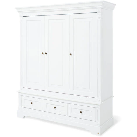 Armoire romantique Ă 3 portes et 2 tiroirs, en MDF noble laquĂ© mat, Uni blanc. L’armoire « Emilia » sĂ©duit par son aspect onirique, avec ses 3 portes et ses 3 tiroirs, elle offre beaucoup de place pour tout ce qui doit ĂŞtre rangĂ© dans la chambre des enfants. L’intĂ©rieur avec 4 Ă©tagères rĂ©glables en hauteur et 1 tringle Ă vĂŞtements ne laisse rien Ă dĂ©sirer ; les boutons de meubles en mĂ©tal de haute qualitĂ© complètent le design romantique des meubles. QualitĂ© Pinolino de haute qualitĂ© ; MatĂ©riau : MDF Uni, laquĂ© blanc ; Dimensions : L 178 cm, P 58 cm, H 208 cm ; Contenu de la livraison : une armoire comprenant 4 Ă©tagères et 1 tringle Ă vĂŞtements, installation nĂ©cessaire.