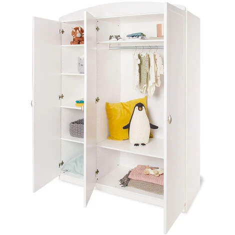 Armoire pratique Ă 3 portes, en dĂ©cor blanc. La grande armoire « Laura » impressionne par son design arrondi et convivial. Avec ses trois portes, elle offre beaucoup de place pour tout ce qui doit ĂŞtre rangĂ©. A l’intĂ©rieur, « Laura » est Ă©quipĂ©e de 6 Ă©tagères partiellement rĂ©glables en hauteur et d’une tringle Ă vĂŞtements. QualitĂ© Pinolino de haute qualitĂ© ; MatĂ©riel : DĂ©cor : Uni, blanc ; Dimensions : L 135 cm, P 54 cm, H 191 cm ; Contenu de la livraison : 1 grande armoire, installation nĂ©cessaire.