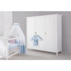 Armoire pratique Ă 3 portes en pin massif, verni blanc ; la structure du bois est visible. L’armoire « Smilla » de Pinolino, dans le style pittoresque d’une maison de campagne, donne Ă la chambre d’enfants un aspect romantique ; elle a Ă©tĂ© Ă©laborĂ©e avec soin et offre avec ses trois portes beaucoup d’espace de rangement.. L’intĂ©rieur avec 7 Ă©tagères rĂ©glables en hauteur et 1 tringle Ă vĂŞtements ne laisse rien Ă dĂ©sirer ; les portes sont Ă©quipĂ©es d’un système de fermeture en douceur ; la bande de couronnes ludique et les boutons mĂ©talliques de haute qualitĂ© complètent le lo. QualitĂ© Pinolino de haute qualitĂ© ; MatĂ©riau : pin massif, verni blanc ; Dimensions de l’armoire : L 178 cm, P 55, H 190 cm ; Une armoire est comprise dans la livraison, installation nĂ©cessaire.