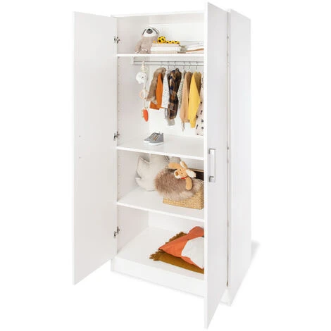 Armoire intemporelle Ă 2 portes, dans un dĂ©cor blanc. L’armoire « Viktoria » sĂ©duit par son optique droite et claire, avec ses 2 portes elle offre beaucoup d’espace de rangement. L’intĂ©rieur, avec 3 Ă©tagères rĂ©glables en hauteur et 1 tringle Ă vĂŞtements, offre beaucoup de place pour tout ce qui doit ĂŞtre rangĂ©. QualitĂ© Pinolino de haute qualitĂ© ; MatĂ©riel : DĂ©cor Uni, blanc ; Dimensions : L 80 cm, P 53 cm, H 180 cm ; Contenu de la livraison : une armoire, installation nĂ©cessaire.