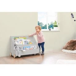 Bibliothèque pour enfants Ă roulettes « Lasse », avec 3 compartiments disposĂ©s en escalier, 1 compartiment secret Ă l’arrière et 4 roues en bois caoutchoutĂ©es. FabriquĂ© en MDF : gris laquĂ©, dimensions L 65 x P 42 x H 57 cm, poids 10 kg, avec marquage CE. Lasse » offre beaucoup de place pour tous vos livres prĂ©fĂ©rĂ©s avec ses 3 compartiments disposĂ©s en forme de marche. En outre, la bibliothèque permet de mettre rapidement et facilement de l’ordre dans votre collection de livres. La surface peinte en gris du produit s’intègre particulièrement bien dans de nombreux intĂ©rieurs et convient aussi bien aux filles qu’aux garçons. RecommandĂ© pour les enfants Ă partir de 3 ans. Au fond de l’Ă©tagère, il y a un petit compartiment secret dans lequel tous les trĂ©sors privĂ©s trouvent une place. Grâce aux 4 roues en bois caoutchoutĂ©es, l’Ă©tagère peut ĂŞtre dĂ©placĂ©e très facilement d’avant en arrière.
