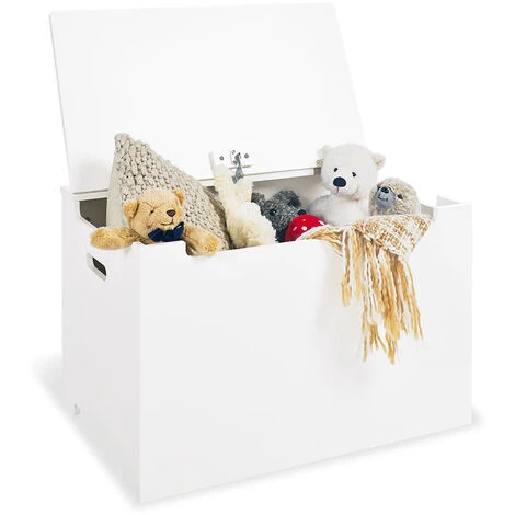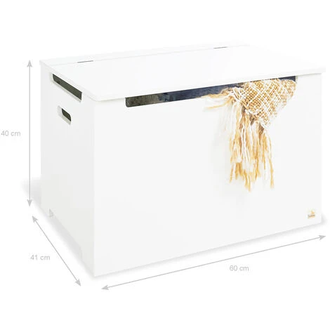 Coffre avec couvercle et clapet, capacitĂ© de charge 30 kg, en MDF Uni, peint en blanc, dimensions : L 60 x P 41 x H 40 cm, poids 7 kg, montage nĂ©cessaire. L’ordre est amusant de cette façon ! La belle boĂ®te de rangement pour les enfants offre beaucoup d’espace de rangement pour tous les jouets. Le clapet Ă rabat et les Ă©videments fraisĂ©s Ă l’avant et sur les cĂ´tĂ©s protègent les doigts de vos petits contre l. Grâce Ă la haute qualitĂ© de fabrication, la boĂ®te Ă jouets assure un plaisir durable. Le design intemporel peut ĂŞtre parfaitement combinĂ© avec diffĂ©rents styles d’ameublement et de nombreuses sĂ©ries de chambres d’enfants de Pinolino. Le coffre Ă jouets peut ĂŞtre chargĂ© jusqu’Ă 30 kg et est un cadeau parfait pour les filles et les garçons pour les anniversaires ou NoĂ«l.