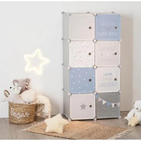 JUDY WILD Meuble De Rangement 6 Paniers + 1 Niche Bleu Et Gris