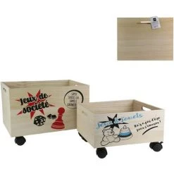 Rangez avec style et authenticitĂ© les jeux de sociĂ©tĂ© de la maison dans ces 2 cagettes en bois brut. Ce design vintage revisitĂ© avec les codes d’aujourd’hui a tout pour vous plaire. dĂ©couvrez sans plus tarder les jolies illustrations qui figurent sur ces modèles. Vous pourrez facilement les transporter grâce aux encoches et aux roulettes prĂ©vues Ă cet effet. Dimensions : 40x29x31 cm – 32×28.5×20.2 cm. Composition principale : bois BĂ©nĂ©ficez d’un format adaptĂ© et pratique ! Dimensions : 29x40x31cm Home Deco Factory est une marque qui offre tout pour votre habitat ! CHANGEONS DE DECOR ! Modernisez votre dĂ©co en apportant une note de peps dans le salon, une chambre, une salle d’attente…