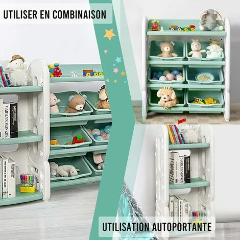 - ★MATÉRIAU SÛR & STRUCTURE SOLIDE★ L’étagère de rangement pour jouets est en HDPE de haute qualité, qui est sûr, respectueux de l’environnement, durable et sans odeur. La plaque verticale de l’étagère est une structure triangulaire, ce qui peut rendre l’étagère stable et pas facile à retourner.