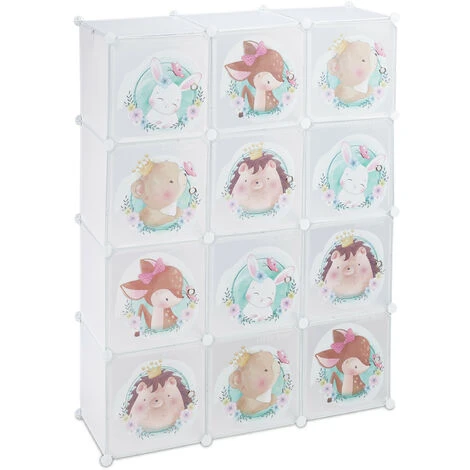Cettearmoire de rangement modulable pour la chambre d’enfant est la solution idĂ©alepour ranger les vĂŞtements et les jouets. Le système d’étagère en plaques de plastique et de connecteurs permet unmontage en hauteur et en largeur, comme vous le voulez. Les deux tringles Ă vĂŞtements permettent de suspendre des vestes ou vĂŞtements. Le plus de cettearmoire, ce sont les portes avec de mignons petits animaux qui feront la joiedes enfants.
