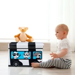 Relaxdays Caisse à Jouets Pliant, Motif, Boîte De Rangement Avec Espace & Couvercle, Rembourré, 34 X 49 X 31 Cm, Blanc