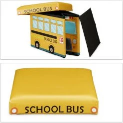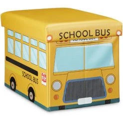 Relaxdays Coffre à Jouets Boîte à Jouets Pliant Tabouret Pouf Enfant Pliable HxlxP: 32 X 48 X 32 Cm Caisse Avec Couvercle En Similicuir Peluche Capacité 37 L Chambre D’enfants, Bus école