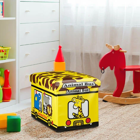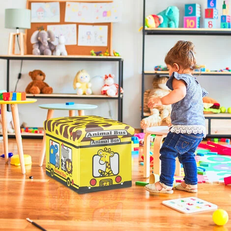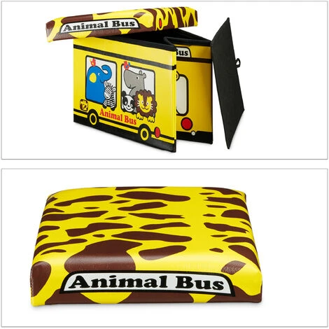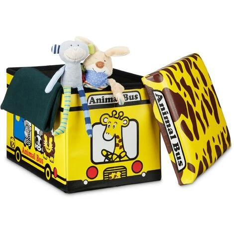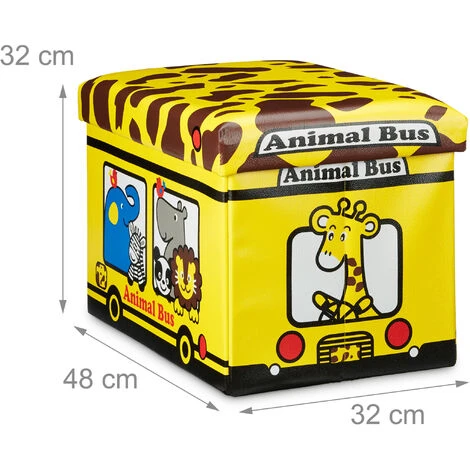 Relaxdays Coffre à Jouets Boîte à Jouets Pliant Tabouret Pouf Enfant Pliable HxlxP: 32 X 48 X 32 Cm Caisse Avec Couvercle En Similicuir Peluche Capacité 37 L Chambre D’enfants, Bus Animaux