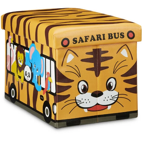 Ce tabouret de rangement aux motifs rigolos s’adaptera très bien dans votre intĂ©rieur. Le tissu en similicuir est rĂ©sistant. Cette boĂ®te peut aussi servir de repose-pieds ou comme table d’appoint. Optez pour cette boĂ®te Ă jouets et faites plaisir Ă votre enfant.