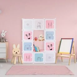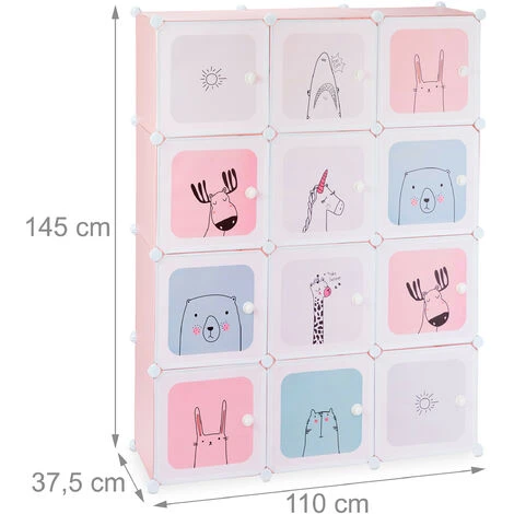 Cette étagère qui s’adapte toujours aux besoins de l’enfant est donc la possibilité idéale pour le rangement des vêtements, des jouets et plus. Le système d’étagère en plaques de plastique et de connecteurs permet un montage en hauteur et en largeur, comme vous le voulez. Les 9 cases de cette armoire pour vêtements et une penderie avec tringle offrent de la place pour les chemises, pantalons, vêtements et autres.