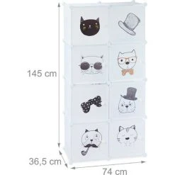 Cette étagère qui s’adapte toujours aux besoins de l’enfant est donc la possibilité idéale pour le rangement des vêtements, des jouets et plus. Le système d’étagère en plaques de plastique et de connecteurs permet un montage en hauteur et en largeur, comme vous le voulez. Les 6 cases de cette armoire pour vêtements et une penderie avec tringle offrent de la place pour les chemises, pantalons, vêtements et autres.