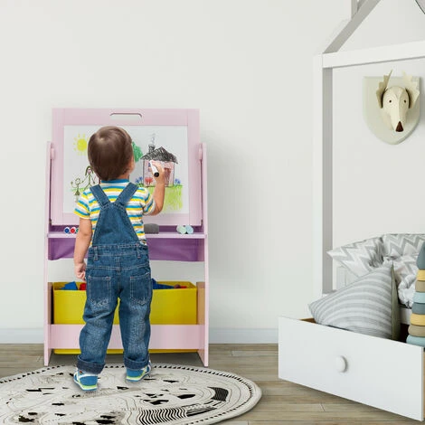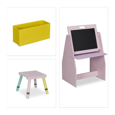 Vos enfants ont-ils l’âme de dessinateurs en herbe ? Ce petit meuble pourrait les intĂ©resser. En plus de faire office de rangement pour les cahiers et les livres, cette table de dessin est livrĂ©e avec un tableau Ă deux faces. Les enfants pourront ainsi Ă©crire ou dessiner en utilisant soit des craies, soit des feutres. D’autre part, pour les enfants ayant l’âme littĂ©raire ou les petits bricoleurs, ce meuble et son tabouret inclus dans la livraison, pourront aussi se transformer en espace de lecture ou de jeux ludiques. Cette table convient aux enfants Ă partir de 3 ans.