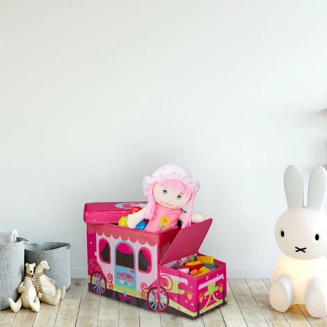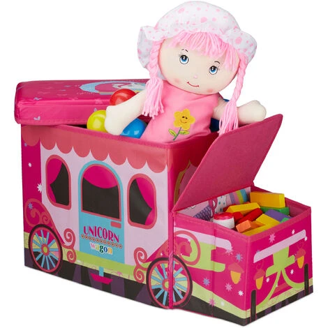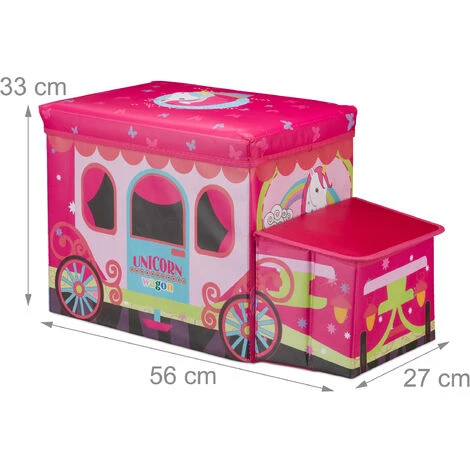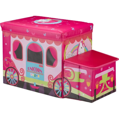 Relaxdays Tabouret Coffre à Jouets Boîte à Jouets Couvercle Pouf Enfant Pliable Licorne 50 Litres