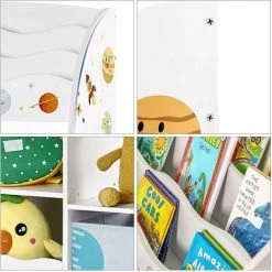 - TOUCHE DÉCORATIVE: Cet adorable organisateur de jouets et de livres avec autocollants embellit l’espace des enfants. Des fusées, des astéroïdes et des étoiles les incitent à découvrir de nouvelles choses et fait travailler leur imagination