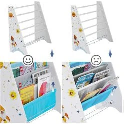 D’une utilité astronomique: Avec cette bibliothèque, vous n’aurez plus à ranger les livres qui ont l’habitude de traîner par terre puisque c’est votre enfant qui voudra lui-même s’en charger. Avec une grande capacité de rangement sur 4 niveaux, cette étagère permet de gagner de la place aussi bien dans la chambre des enfants, la salles de jeux et le salon que dans les garderies et les écoles maternelles.