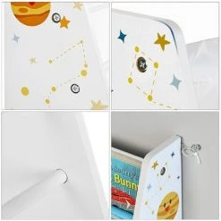 Vers de nouvelles explorations: Cette bibliothèque accompagne les plus petits à grandir en stimulant leur apprentissage. Une hauteur adaptée à leur taille les incite à lire davantage puisque les ouvrages sont désormais à leur portée de main. Les paniers de différentes couleurs les entraînent aussi à identifier, à trier et à mieux ranger leurs livres préférés. Les motifs sur le thème de l’espace leur procurent un goût pour l’aventure, renforcent leur intérêt pour le monde qui les entoure et stimulent également leur créativité.