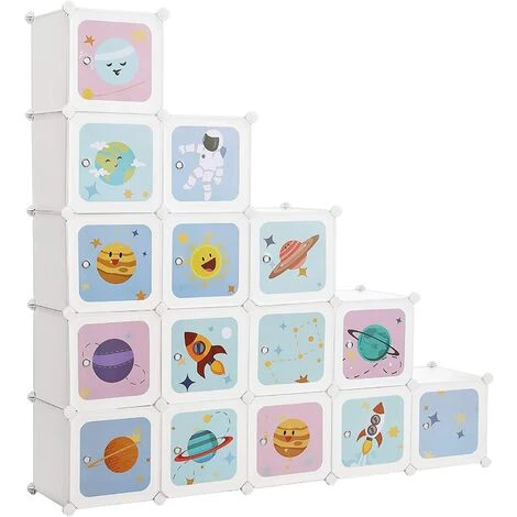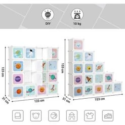 Explorez plus de possibilités : Le système par emboîtement permet des possibilités infinies. Vous pouvez installer les cubes comme vous le souhaitez pour avoir un meuble vraiment adapté à votre pièce. En plus, leurs motifs sur le thème de l’espace stimuleront l’imagination des plus petits.
