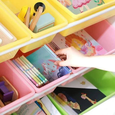 - Conçu pour les enfants : Grâce à sa hauteur de 78 cm, les enfants peuvent facilement attraper leurs jouets et leurs livres. Les 12 bacs sont amovibles pour faciliter le rangement des jouets qui traînent dans le salon et la chambre