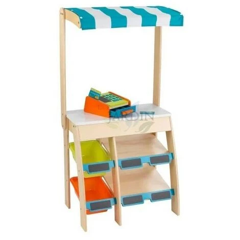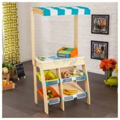 Les enfants peuvent explorer leur cĂ´tĂ© entrepreneurial avec le stand d’Ă©picerie KidKraft. L’ensemble comprend des Ă©tagères avec des conteneurs en plastique amovibles pour stocker les produits, des tableaux blancs pour l’Ă©tiquetage, un auvent en tissu, une caisse enregistreuse interactive et une carte de crĂ©dit jouet.