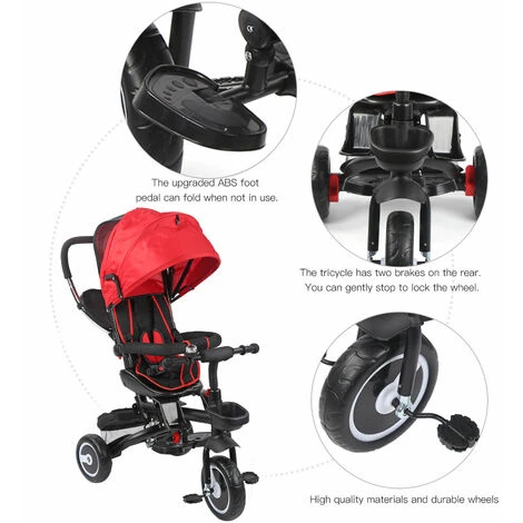 4. Grace au putter intĂ©grĂ©, vous pouvez contr?ler la direction de manière flexible et amener les enfants Ă jouer. Le tricycle a deux freins Ă l’arrière. Vous pouvez vous arrĂŞter doucement pour verrouiller la roue. Il est facile Ă utiliser et s?r Ă voyager. La pĂ©dale ABS amĂ©liorĂ©e peut se plier lorsqu’elle n’est pas utilisĂ©e.
