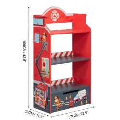 Vous dĂ©sirez de tout cĹ“ur ajouter des histoires et livres imaginatifs et variĂ©s dans la chambre de votre enfant ? Aidez les sympathiques pompiers de notre collection sur les pompiers Ă Ă©teindre l’incendie, avec notre bibliothèque Petits pompiers. Cette bibliothèque raconte l’histoire de courageux hĂ©ros, qui sauvent des vies au quotidien au cours de leurs missions, mais elle offre Ă©galement un vaste espace de rangement pour d’autres excellentes histoires et lectures. Conçu en rouge vif pour reprĂ©senter un bâtiment de brique rouge ou une caserne de pompiers, et les trois Ă©tages, ainsi que le tiroir du fond, sont peints en gris ardoise. Cet article est Ă©cologique et peint avec une peinture non toxique, pour que vos enfants puissent l’utiliser dans leurs chambres en toute sĂ©curitĂ©. Les personnages montrent vraiment ce qu’ĂŞtre le hĂ©ros du moment reprĂ©sente, et tout ce que ces hĂ©ros doivent endurer pour prĂ©server le calme. Laissez votre enfant ranger ses livres prĂ©fĂ©rĂ©s ici pour qu’ils soient faciles d’accès et en sĂ©curitĂ©.