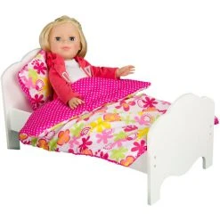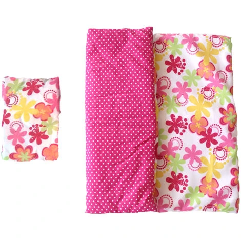 – L’édredon et l’oreiller aux motifs florales pour poupĂ©e sont rĂ©versibles.