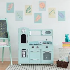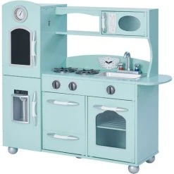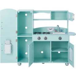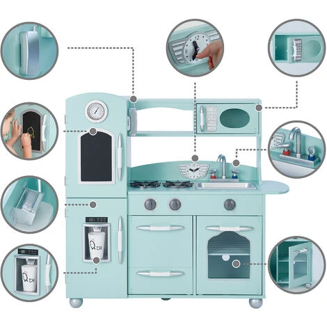 Votre petit cuisinier va adorer prĂ©parer des repas dans cette cuisine enfant vert menthe d’un style Ă la fois rĂ©tro et contemporain. Les enfants de trois ans et plus aimeront faire semblant d’utiliser le rĂ©frigĂ©rateur le micro-onde la plaque de cuisson le four et l’évier. (L) 97.16 cm x (l) 29.21 cm x (H) 93.35 cm.