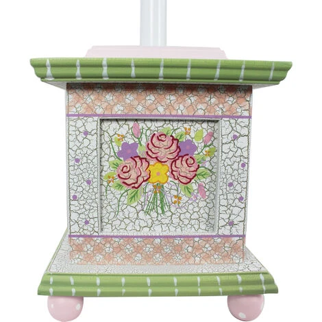 Apportez de l’élégante dans la chambre de votre enfant avec la lampe à poser Crackled Rose de Fantasy Fields. Le pied de la lampe est conçu avec délicatesse. Peint et sculpté à la main Il est composé d’un magnifique bouquet de fleurs vives. Une ampoule LED est fournie. Aucun montage nécessaire. La lampe de chevet convient aux enfants de tout âge. (L) 30.48cm x (l) 30.48cm x (H) 53.34cm.
