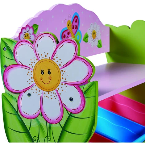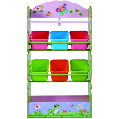 Apprenez Ă vos enfants Ă ranger et organiser leurs objets et jouets prĂ©fĂ©rĂ©s avec le meuble Ă jouets avec bacs de rangement Jardin magique. Ce meuble enfant en bois est revĂŞtu de belles couleurs vives et de superbes papillons et fleurs autour de la structure. Il comprend six bacs de rangement pratiques pour que les enfants puissent y placer leurs affaires. Vous pouvez ĂŞtre sĂ»rs que ce meuble ne basculera pas car il dispose d’un dispositif anti-basculement garantissant la sĂ©curitĂ© de tous vos ĂŞtre chers. Il n’est jamais trop tĂ´t pour apprendre Ă vos enfants Ă ĂŞtre ordonnĂ©s commencez dès Ă prĂ©sent !