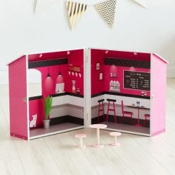 Explorez la crĂ©ativitĂ© avec la maison de poupĂ©e de Olivia’s Little World pour fille ! Cette nouvelle maison de poupĂ©e en bois rose et noir est sĂ»re de garder vos enfants occupĂ©s pendant de longues heures ! Elle reprĂ©sente un cafĂ© de ville.