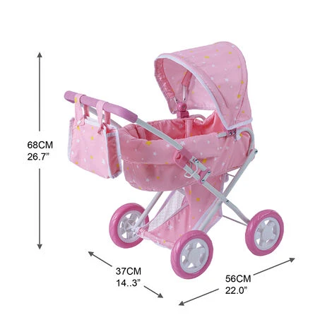 – STYLE: Cette superbe poussette pour bĂ©bĂ© est une poussette parfaite pour les poupĂ©es de 16 Ă 18 pouces. Système 2 en 1, fonctionne entièrement comme poussette et porte-bĂ©bĂ© Ă main. Le siège peut ĂŞtre orientĂ© dans les deux sens. PoupĂ©e non incluse.